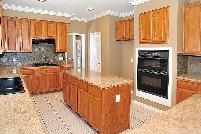 Pulte 1 story home on an oversized, wooded lot in Alden Bridge! Open floor plan w/high ceilings, stunning hardwood floors, new carpet & tile, crown moulding & neutral paint colors throughout. Island kitchen w/granite counters, gas cooking & plenty of stained cabinets opens to breakfast room; formal dining w/wainscoting; spacious den w/gas log FP; private study; master suite w/sitting area; generous secondary bedrooms; private, fenced yard w/beautiful pool & patio surrounded by lush landscaping.