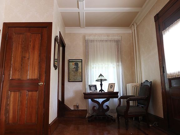 FULLY UPDATED COLONIAL with 2-car detached garage! Registered in the National Historical District. BREATH-TAKING gazebo-style front porch enters into foyer of home with original hardwood flooring and crown molding. Formal living room with antique style wood mantle wood-burning fireplace opens up to formal dining room. Eat-in kitchen with white cabinets, black granite counter-tops, black appliances and STUNNING wainscoting. Full bathroom completes main level of home. The 2nd level of home offers 4 large bedrooms, a full bathroom and central air conditioning. The 3rd level has an attractive walk-up attic that can be finished for additional square footage. This homes also boasts newer siding, roof, windows, heating system and electrical service. TRULY A DIAMOND IN THE ROUGH!