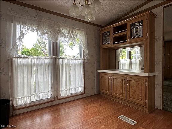 Great opportunity to own this well-cared for manufactured home, located in the desirable Navarre Village community. Perfectly situated on a cul-de-sac with a yard that boasts beautiful landscaping. Immediate possession of this 2-bedroom home. Includes all window treatments, cathedral ceilings in the living room & kitchen, skylight in the kitchen, lots of cupboards, ceiling fans, master bath with a walk-in shower and main bathroom with a walk-in tub, appliances to include - washer/dryer, fridge, range, and microwave. Two-car carport & shed remain, 3-season screened-in front porch. Lot rent includes trash, water & sewer.
