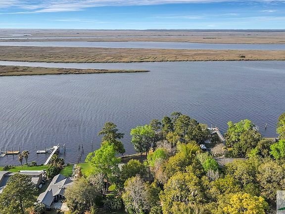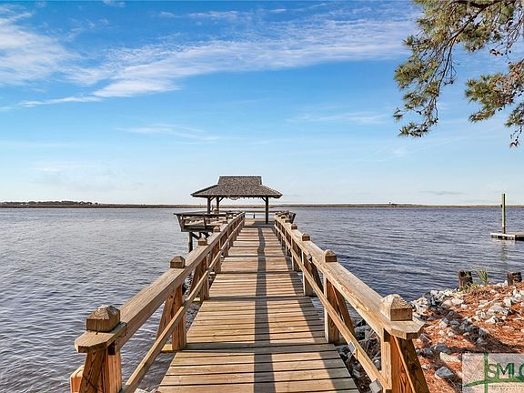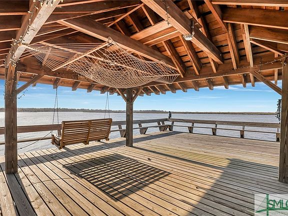 PRICE IMPROVEMENT!Rare opportunity to own this DEEP-WATER sanctuary on the Ogeechee River. Adjacent to Fort McAllister Park + Marina, enjoy direct access to the ICW and barrier islands from this private retreat. Situated on not one but TWO waterfront lots!! Custom home designed for entertaining with heart pine floors and wet bar in living room. Panoramic sunroom, a large family room, and three bedrooms on the main level. The impressive owner’s suite on the second floor captures breathtaking views. Exquisite grounds with meandering paver paths feature a garden pavilion with an outdoor kitchen + bar, Viking grill, masonry fireplace, and a wood-burning pizza oven. Enjoy stunning sunsets, boating, fishing, and all the best of coastal living from your large covered dock!