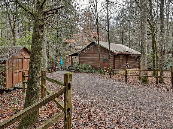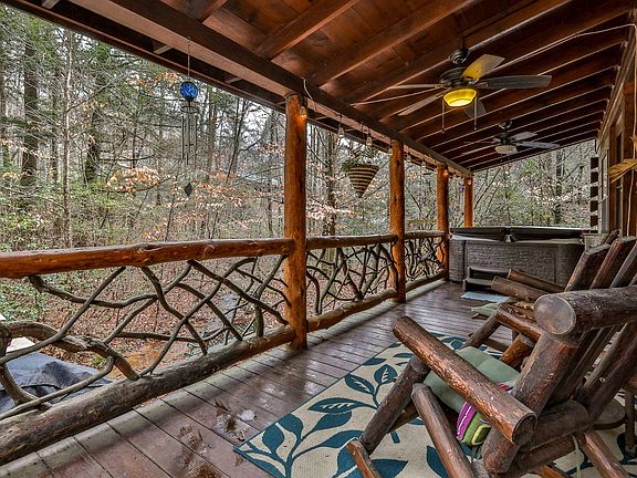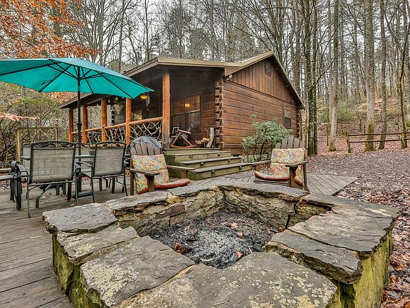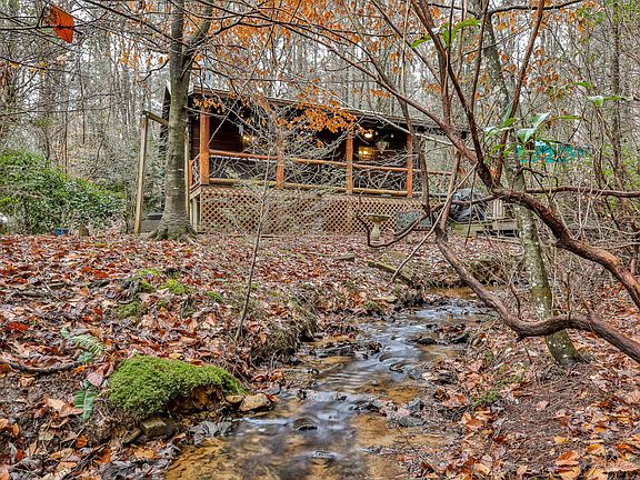 FURNISHED Creek Log Cabin in the woods. This is the cutest 2 bedrooms and 1 bathroom log cabin. 310.54' of creek frontage on the property. The noisy rushing water sounds of the creek and waterfalls are mesmerizing. Imagine roasting your marshmallows by the fire pit area . Relax or read a book in the hammock by the creek or soak in the hot tub on the large deck. Successful vacation rental and completely furnished so just bring your tooth brush. Custom built cabinets w/ granite countertops in the kitchen and bath. Roof is only 2 years old. Hike the Benton McKaye trail to Cherry Lake for a swim or fishing, just steps from your front door. 1.4 acre level lot. Just minutes to Ellijay or Blue Ridge.