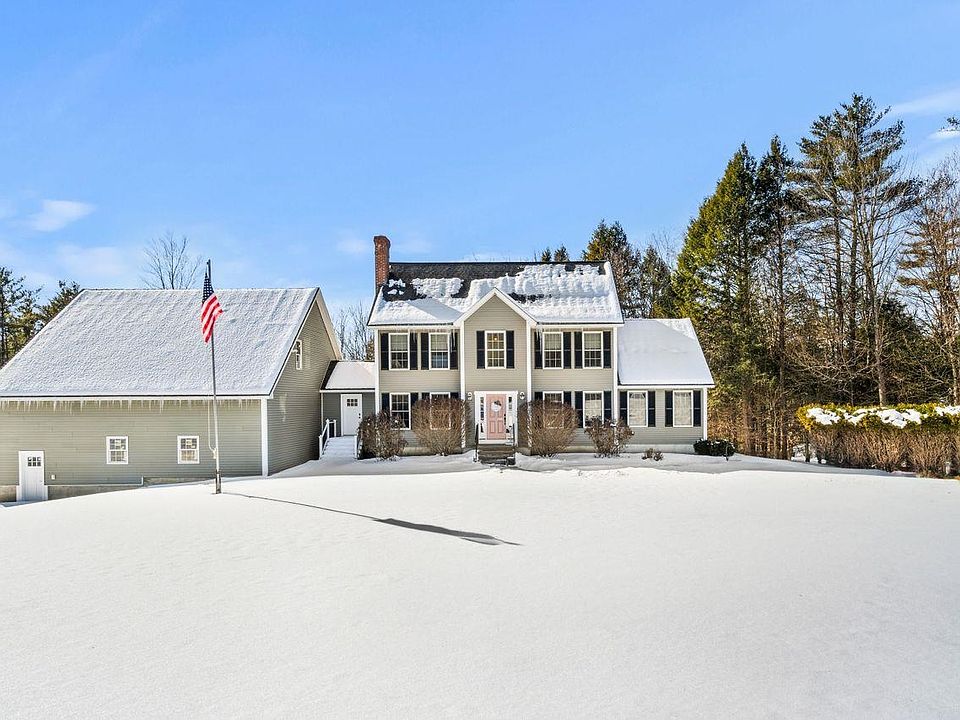 Welcome to this stunning 4 bedroom 2.5 bath Colonial home in the charming town of Farmington, New Hampshire, about 10 minutes from both Rochester and the Maine border. Offering over 3,000 square feet of finished living space spread across 3 levels, this home is a perfect blend of comfort, style and functionality. As you enter through the front door, you'll find an inviting office to the left and a formal dining room to the right, ideal for hosting dinner parties or household gatherings. The spacious kitchen features Corian counters and a butcher block island, and it opens to the vaulted ceiling living room, creating an airy, expansive feel. The main floor also includes a convenient powder room and a custom pantry, which leads to an unfinished breezeway that connects to the massive 40x40, 3-bay garage. Equipped with 13-foot doors, this garage can store up to six cars, making it a dream space for car enthusiasts. The 2nd floor of the garage is unfinished- but has potential for an in-law. On the 2nd floor of the home, you'll find a spacious primary ensuite with a walk-in closet, plus two additional bedrooms that share a full bath. The 3rd floor is fully finished and offers two versatile rooms. The mudroom leads to the two-car garage, wired for EV/RV charger. Why settle for a She-Shed when you have your own garage! Step outside into your fenced-in backyard oasis, featuring an in-ground pool, a beautiful patio and a fire pit, ideal for entertaining or relaxing.