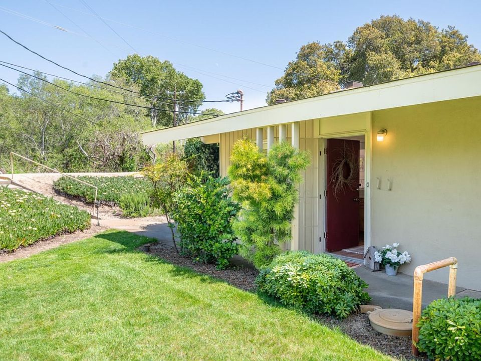 This spacious end unit located near the walking trail features vaulted ceilings and abundant natural light. Many updates in warm hues include low maintenance plank flooring, fresh paint and updated bathrooms. Kitchen features stainless steel appliances, window with charming shutters and breakfast bar. The living room invites both entertaining and relaxation with vaulted ceiling, beautiful gas fireplace and sliding glass doors to the patio. Primary bedroom en suite has a glass door to the patio and boasts a walk-in closet and porcelain bathroom sink with large tile shower. Second bedroom with built-in bookshelves and walk-in closet. Second full bath offers jetted soaking tub and marble sink counter. Gracious fenced patio for outdoor living with pavers, rose bushes and peaceful views of trees and distant hills. Association restaurant receives many kudos, other amenities include pool, community garden, and walking paths through beautiful landscape. Laundry and extra storage.