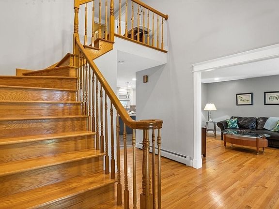 Custom Cape Cod style home with large farmers porch set on .69 acre professionally landscaped lot. First floor has primary bedroom and full bath with separate steam shower and soaking tub. On demand hot water with back up system. Living room, kitchen with quartz counter tops all new stainless appliances.Enjoy the fireplace from kitchen and dinning. Open the sliders leading out to private oasis of a deck and beautiful pool . Laundry room and large closet lead to 2 car garage.Second floor has two oversize bedrooms and a full bath, separate dressing room with expansive closet system. Exterior is red cedar clapboard and roof is 1 years old. Salt water pool is freeform with cabana, out door shower and built in propane grill. Privacy and solitude abounds. First Open House on Saturday June 8th 11-12:30 and Sunday June 9th @ 11 -12:30