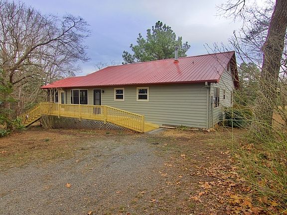 Cute and Cozy Cabin Style Home is nestled on gentle lot overlooking mountain view - just off of paved road, yet tucked away - 2 bedrooms/2 newly remodeled baths, spacious sunroom, large laundry, open kitchen/living/dining with warm wood heater and breakfast nook, high ceilings promote open feel, nice yard, sprawling deck with handicap ramp, covered front porch, spacious parking and easy access, comfortable home in picturesque area.