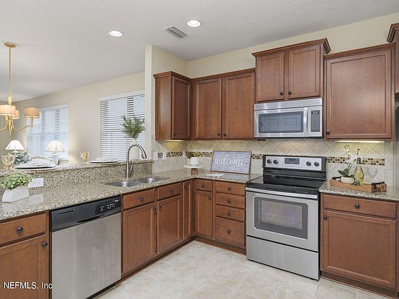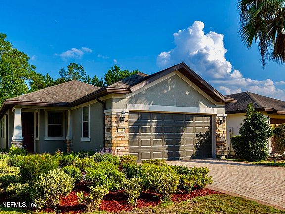 Discover the pinnacle of active-adult living at Del Webb Ponte Vedra! This vibrant community offers the ideal blend of comfort and recreation, featuring the impressive 37,800-square-foot Anastasia Club. Enjoy resort-style amenities such as tennis courts, pickleball, bocce ball, indoor and outdoor pools, a state-of-the-art fitness center, scenic walking paths, and a garden center. Plus, all the additional Nocatee amenities are just a golf cart ride away. This charming Garden Home, with 3 bedrooms (or 2 plus an office) and 2 bathrooms, is designed with a thoughtful split floor plan to ensure everyone has their own space. The open layout is perfect for entertaining, with the kitchen seamlessly connecting to the dining and family areas. Wood and tile flooring throughout the main living spaces add a touch of elegance. The spacious owner's suite is a retreat in itself, featuring an ensuite with double vanities, a walk-in closet, and a glass-enclosed shower. Enjoy serene mornings on the screened lanai, overlooking the tranquil preserve. The garage boasts high-end Shark Coating epoxy floors with a 10 year transferable warranty. Smart Home Features include: Trane A/C Smart Touch Screen Thermostat with phone app & Rachio Irrigation Watering System providing savings on both electricity and water. Whether you're seeking a primary residence, a second home, or downsizing, this home offers the perfect blend of convenience and comfort. Make it yours and experience the best of Del Webb Ponte Vedra living!
