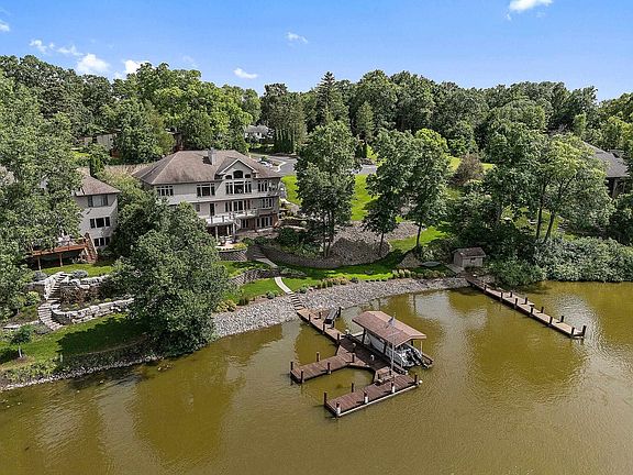 Imagine living in this lavish Ranch home with 2 lower walk-out levels on the Fox River! Complete with large offices, recreation rooms, opulent kitchens, and a heated garage. The main bedroom has an ensuite bathroom with vaulted ceilings. Every room has a wealth of windows to allow for natural light and for you to enjoy an uninterrupted view of the river. This home has it all for you to host gatherings or curl up with a book next to any of the various fireplaces. Even though you’d be a 5-minute drive to downtown, this home sits on a private dead-end street, which means noise is at a minimum. Come see this beauty for yourself! Don't miss the Radtke Dock, main dock has power, water and a 15k lbs lift.