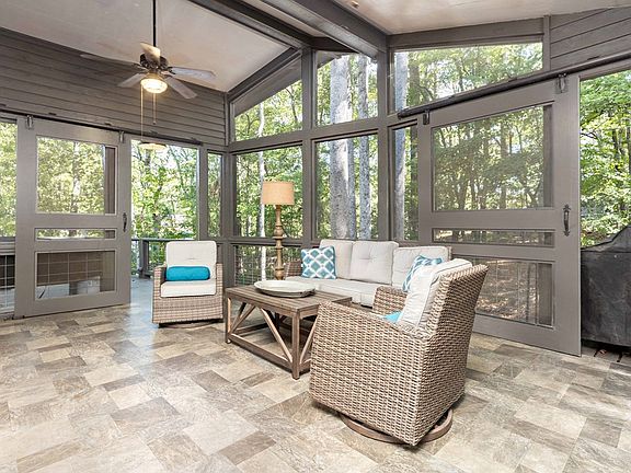 Completely remodeled waterfront retreat on beautiful Lake Harding! This stunning 4-bedroom, 3-bath home showcases three spacious living areas, ideal for entertaining family and friends. Take in the lake views from two screened porches or multiple outdoor decks designed for relaxing and gathering. With 173+ feet of waterfront and 15 Water depth at dock, a double-decker boathouse, and a large stationary dock, you'll enjoy endless days of fun in a deep-water, no-wake cove—perfect for swimming, paddleboarding, and peaceful lakeside living. Every inch of this home has been thoughtfully updated, blending modern style with timeless lakefront charm.