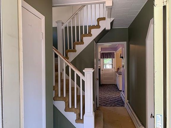 Looking for a Lovely 2 story home on a pretty and quiet one-way street in Canton Boro? You just found it. This is a cheerful well kept 3 Bedroom home with a nice layout of the kitchen, dining room, living room and Foyer. The home has a covered front porch, an enclosed sunroom off of the kitchen and a cement Patio with a gazebo top in the back yard. There is a cement parking pad for 3 cars on north side of the lot. The home has Vinyl Siding, very nice landscaping and a large shed for your mowers and crafts in the backyard. The laundry room is in the basement. The basement has a concrete floor and white walls and has its own outside entrance. Economical natural gas baseboard heat and natural gas water heater. Home being sold AS IS. Convenient for shopping and taking walks. Don't delay, you could be snug as a bug for winter!