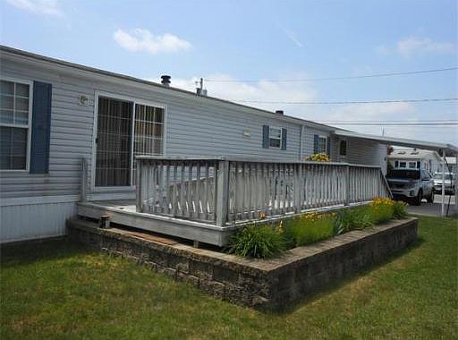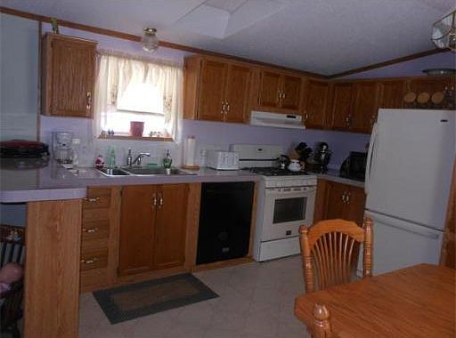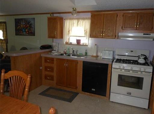 Move in condition mobile in Holiday Park spacious open floor with eat-in-kitchen to living room with fireplace electric insert with blowers, two bedroom two baths home with gas heat and central air all appliances to remain roof re-done +- 4 years ago sliders in master bedroom lead to spacious deck cement driveway covered by carport