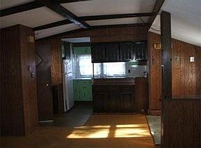 Great opportunity to downsize or buy 2+ bedroom second home mortgage free! Could be one of the best locations in this over 55 park with a rear view that overlooks woods and not a neighbor. Large baseboard heated porch is a plus for guest sleeping and is included in gross living area. Overall pretty solid. Needs fresh paint and carpet to brighten it up. Repairs and updating still needed but can be done over time.