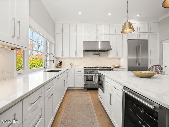 Brand New Construction completed in November 2020! Well designed four-bedroom Colonial with an open floor plan, 10' ceilings on first floor and wide plank French oak floors. Main level showcases an impressive kitchen outfitted with quartz-clad countertops, tall shaker style cabinetry, center island seating and breakfast area open to a stunning great room with gas fireplace and deck access. Stylish master suite with vaulted ceiling, spa bath, and walk-in closet. Two bedrooms, full bath and laundry complete the second floor. Bathrooms offer quartz-topped counters and marble floors. The gracious lower level provides a playroom, bedroom, full bath and wet bar; perfect for an au-pair or in-law suite. Conveniently located to town, train and schools.