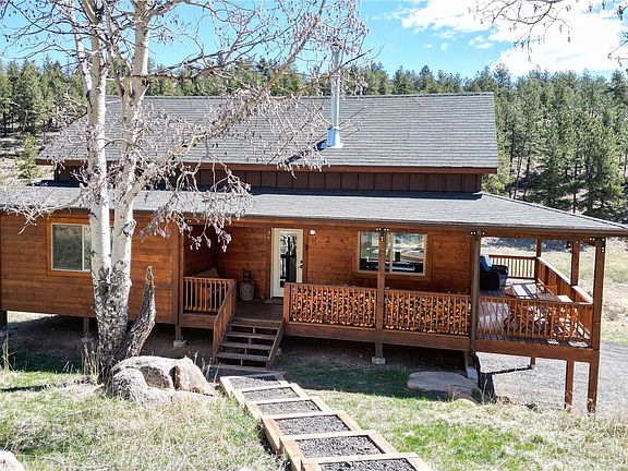 Amazing mountain retreat nestled in the private and serene gated community of Lions head Ranch! This home could make great primary or second home! Move right in ready to go beautiful 3-bedroom, 3-bathroom home is perfectly situated to maximize privacy and panoramic views of the surrounding mountains. The interior of the home features a spacious open floor plan that connects the living room, dining area, and kitchen. The custom kitchen is equipped with stainless steel appliances, and kitchen island. Large windows throughout the home invite natural light and frame the breathtaking outdoor scenery. The master suite provides a tranquil retreat, complete with a spacious bathroom and closet space. Additional bedrooms and main floor bonus room are well-sized and offer flexibility for use as guest rooms or home offices. Don't miss the loft area or additional upper-level bedroom/office. And you absolutely have to see the extra finished spacious area off the garage in the lower level featuring a private bedroom and additional bathroom! Stepping outside, the property boasts an expansive deck that overlooks the forested landscape and mountainous backdrop, offering a perfect spot for true relaxation. All furniture could be included or purchased. This home is part of a community that values privacy and natural tranquility. It has easy access to local trails and natural outdoor recreation areas. The area is known for its friendly neighbors and security community renowned for its natural beauty and outdoor activities, including hiking, fishing, and mountain biking. The home is conveniently located just a short drive from Conifer and Denver, offering the perfect balance of rural living with urban access. Nearby attractions included Staunton State Park, Pine Valley Ranch Park, Pike National Forest, Local artisan shops and dining. Only a quick reasonable drive to shopping grocery stores and 23 miles into the Denver metro!