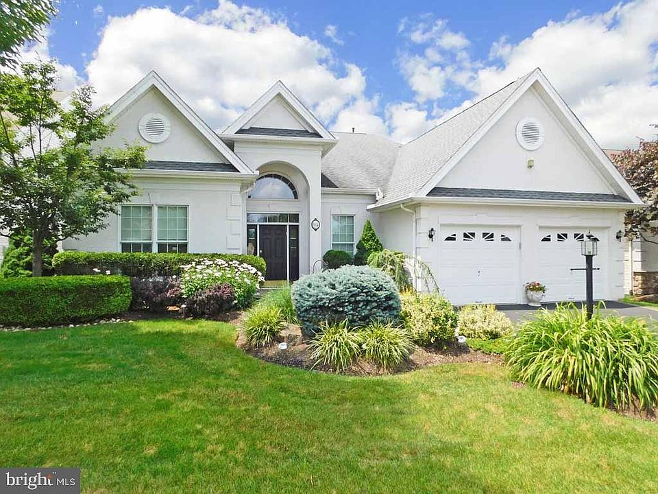 Do you really want to shovel snow again this year?? Imagine having the snow plowed and shoveled right up to your front door. There is still time to own this luxurious single home located in the Premier 55 plus community of the Regency at Northampton. The beautiful curb appeal is just the beginning of what this home has to offer. Let the pavers lead the way to the vestibule of this home with 20ft high coiffured ceiling. The open floor plan looms in front of you beckoning you to enter. First you stop to see the bedroom and full bath on one side of the foyer and the laundry room and garage entrance on the other. Your guests will enjoy total privacy when visiting you. Perfect for entertaining, the main area of this home encompasses a formal dining room, large expanded living room and kitchen. The hardwood flooring covering these rooms is simply beautiful in both color and condition. There is a large dining room with defining decorative beams adorned with crown moldings. The focal point of the living room is the gas fireplace with a marble surround flanked by large windows lighting the room. This great room also includes the kitchen and the breakfast room. The unique granite selection adds a lovely embellishment to the custom cabinets. Drink your morning coffee while sitting at the over sized island. Enjoy your meals while gazing out at your private patio. The 2 additional bonus rooms can be used for whatever you heart desires. Set behind glass French doors, a den/ study is currently set up in one room, and a sun room/reading room is enjoyed in the other. The master suite offers a large walk in closet and luxurious master bath with double sinks, soaking tub and stall shower. This home offers ample storage space and is perfect for your next phase of life. Enjoy the clubhouse, outdoor pool, cards, games, and parties instead of mowing your lawn or shoveling the snow. Maintenance free living awaits you! All Stucco was re-mediated and replaced by builder.