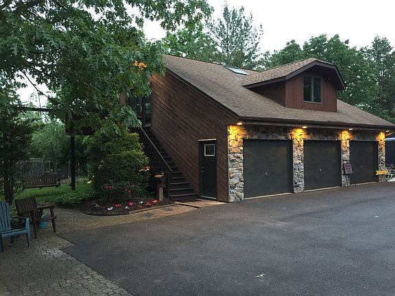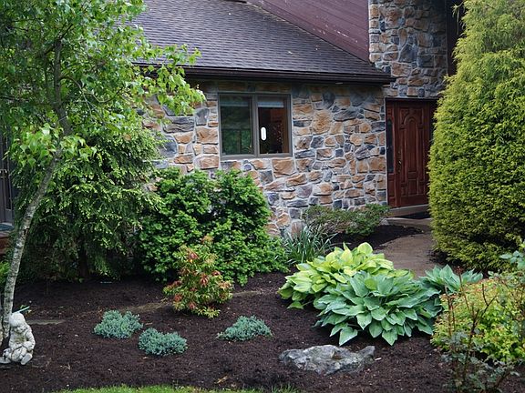 Mountain Contemporary; KITCHEN; -Granite tops -Large island with seating for 4 -s.s appliances; GE Profile stove and microwave, Kitchenaid DW with ss interior -Open to Dining and Living Room -Large Anderson Casement windows with southern exposures -Andersen sliding glass door to deck -Kahle's Cabinets; custom design by professional kitchen designer -Cathedrail ceiling with exposed douglas fir post and beams -Tile floor -DR with large bay window overlooks private back yard -Built in hutch with glass doors, switched lights LIVING ROOM; -Open to kitchen and dining -hardwood floor-not a laminate -Rumford fireplace-energy efficient wood burning fireplace with brick front floor to ceiling -wood ceilings with exposed beams -large south window -white pine raised panel doors throughout FIRST FLOOR MASTER BEDROOM AND BATH; -Hardwood floor -large southern window -double door entrance to tile floored cathedrail ceiling sunroom. Great for private study, exercise room or crafting. -Newly remodeled master bath with HIS & HER walk in closets. Large linen closet -Granite top with double bowls and large mirror FIRST FLOOR LAUNDRY; -10" x 10" tile floor, large south window, wood paneling and ceiling -Cabinetry offers plenty of storage and options THREE BEDROOMS ON 2ND FLOOR; -1 large 2nd master suite with WIC and lighted display closet for collections or trophies. -2nd BR with walk in closet and wood floors -3rd BR with 2 closets and skylight, and angled window -Bath includes jetted tub, tile shower and floor, granite top with double bowls BASEMENT; -Open family room with 8' Andersen slider opening to EP Henry patio -2nd large family room/ Guest area with closet GARAGES; -2 car attached with additional storage -3 car 28'x 36' detached garages. Store boat, equipment, cars, trucks . Pulldown stairs for private storage -Large office over 3 car garage -12' x 20' shed with garage door-great for mowers, garden equipment, etc.. -Playhouse over wood shed -Macadam Parking next to 3 car garage could be used to park RV or large vehicle. YARDS AND GROUNDS; -Pond -85 yard fairway with sand trap to practice golf swings -Trail around 3.2 acre property for nature walks, exercise, riding your golf cart around -500' driveway (flag pole lot) offers privacy, distance from road and/or play for children. -Bird and wild life viewing (deer, turkey, rabbits, fox)