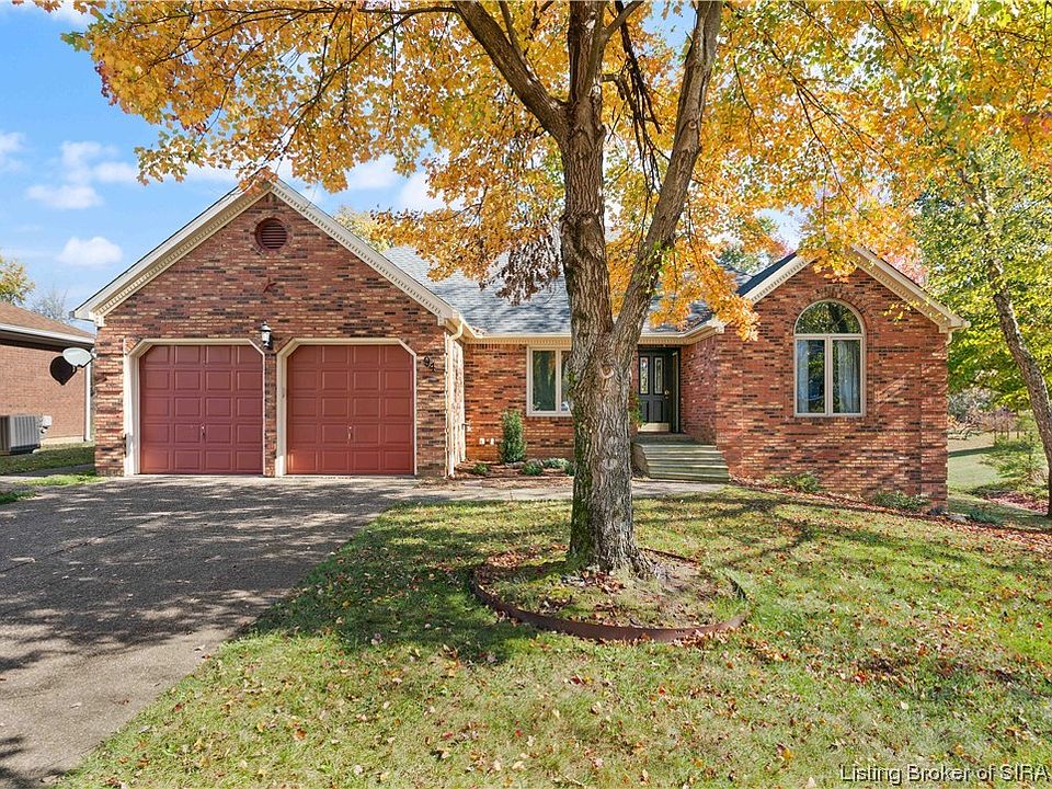 RARE FIND!! Looking for a renovated all brick ranch near IUS in New Albany? You’ll fall in love with the four-season sunroom – a great spot for enjoying nature or as your personal retreat. Vaulted great room, fireplace, new French doors to formal dining or home office with new blt-in bookcases, 3 bedrooms and 2 newly remodeled baths. The gorgeous new kitchen includes elegant cabinetry and counters, glazed brick backsplash with chimney range hood, high-end convection/air fryer stove, stainless refrigerator, new LG washer/dryer. Part daylight basement offers workshop and lots of storage. Nestled on over HALF ACRE, there’s 2 covered decks, a utility shed and fenced yard. 2 car garage, close to schools, stores, restaurants. Streamlined living in a peaceful setting. Immediate possession, easy to show and see! Antique mirror in primary bathroom is not included in sale. New mirror stored in primary