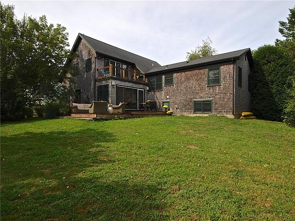 Cottage Chic....this fabulous in-town 5 bedroom/4 full bath home was completely renovated in 2007 with high-end finishings and a touch of whimsy. The open floor plan offers a large Chef's kitchen with Miele appliances, Sub Zero refrigerator, Caesarstone counter tops, custom cabinetry and center island which opens to an over sized eating area. Plenty of room for entertaining or for keeping the chef company. The living room is bright and airy with a zero clearance fireplace and sliders that open to a spacious deck. The master suite boasts a cathedral ceiling, spacious walk-in closet, master bath with pebbled/tiled shower and floor, and sliders to private deck. As you cross the open hallway you come upon the laundry room, a cozy loft, and a light filled office tucked away for privacy. The North side of the house offers four more bedrooms, all are roomy in size and offer double sized closets, a den, two full baths and an ample storage room. If mud rooms and garages make you smile, look no further. The mud room offers six built in cubbies and additional drawers and cubbies for storage. It is easily accessible from the heated, over sized two car garage. An additional unfinished heated room above the garage is waiting for you to make your own. Located in the Village of Jamestown, you are just a few minutes walk from all restaurants, shops, library, tennis courts, schools, beaches and water access for sailing, kayaking and paddleboarding.