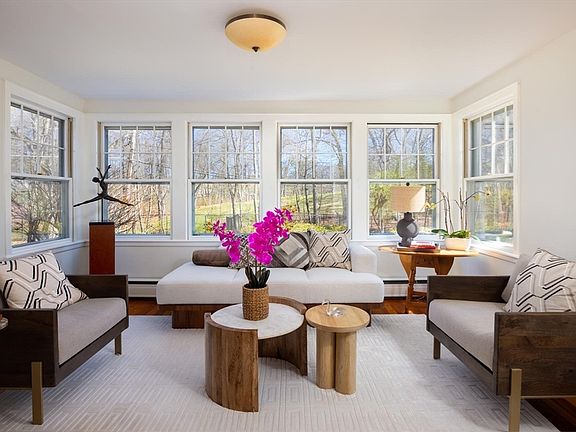 Ideally located in Waban amongst beautiful surroundings, this lovely residence was thoughtfully designed by an architect for his own home and has fantastic views of the Brae Burn Country Golf Course. Light and bright with many windows, the main level features an oversized living room, with a fireplace, overlooking luscious grounds; a wonderful family room; a spacious dining room; and a sparkling kitchen with a sleek back splash, new countertops, and a separate eating area. The second level is comprised of an expansive primary bedroom suite with a tastefully renovated bathroom, three other large bedrooms, and another renovated bathroom. The finished lower level with a full bathroom is terrific and can be used as a playroom or gym. Further enhancements include a breezeway with direct entry into the garage with an EV charger, Viessmann gas systems, air-conditioning, and a recently replaced roof and newer windows. This property is convenient to the Angier School, “T”, and major roadways.