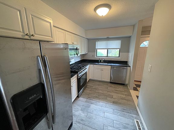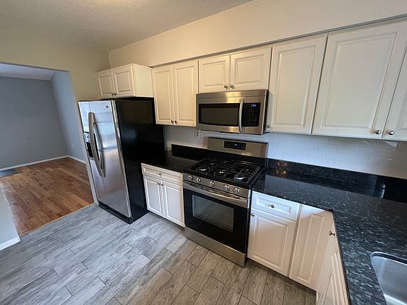 - Kitchen includes stainless steel appliances: gas stove/oven, refrigerator, microwave and dishwasher