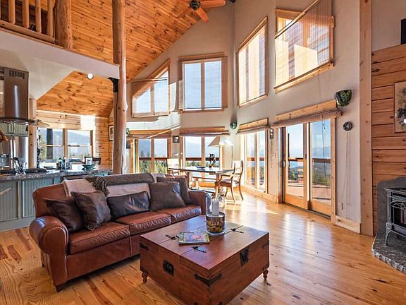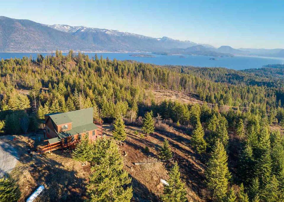 This is your Idaho Dream! Breathtaking panoramic views overlook Lake Pend Orielle, the surrounding mountains, valleys, & into Montana. Home is situated on a very private mountain side. Whether you are basking on the 1000 sq ft wrap around deck, relaxing on the couch, or standing in the gourmet kitchen, you can enjoy these amazing views through floor to ceiling windows in this 3626 SF (2051 finished) multi-level, home. 2 beds/2.5 baths, including a main floor master suite, two living rooms.