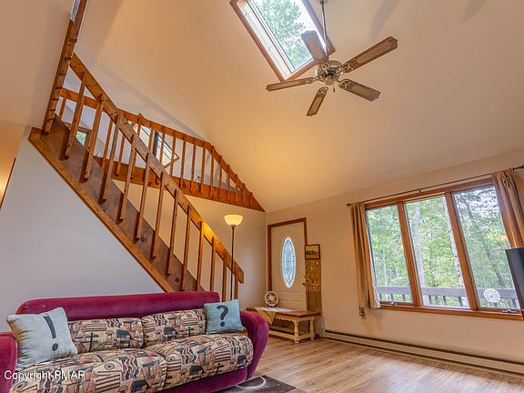 This chalet offers an idyllic retreat close to a lake, with convenient access to a beach just a short walk away. Featuring three bedrooms and two bathrooms, this well-maintained property sits on a corner lot and boasts a new roof installed only two years ago. Each room is equipped with a split system for climate control, and the cathedral ceiling with skylights allows natural light to flood the space. The wrap-around deck provides ample outdoor living space, while the storage shed and stand-up crawl space offer plenty of storage options. Make this your home and take advantage of all the amenities and natural beauty the community and the Poconos have to offer.