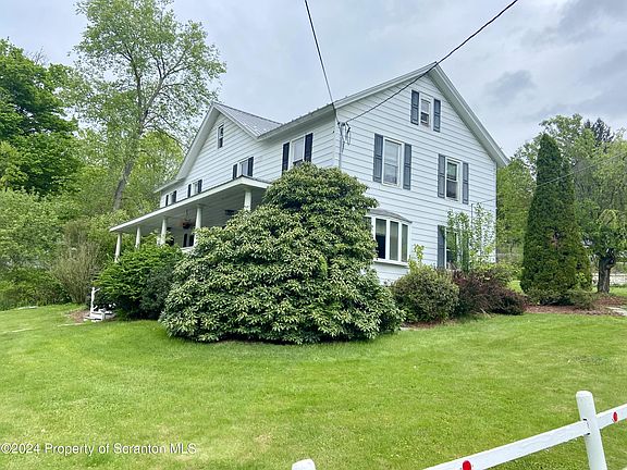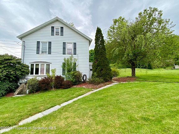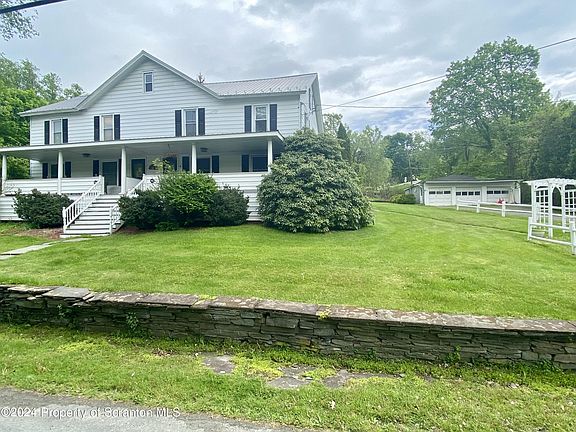 Nicely landscaped side by side duplex with 3 car garage siting on .71 acres in the town of Hop Bottom. 3 bedrooms, 1 bath on each side. Front and back porches. Metal roof put on in 2014. Public water. 1000 gal sandmound septic with aerator.Additional electric meter and water hook up next to the patio in the back yard. With one unit vacant this is a great opportunity to live in one side and rent out the other or add it as a complete investment property!