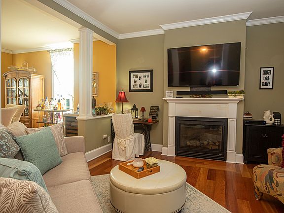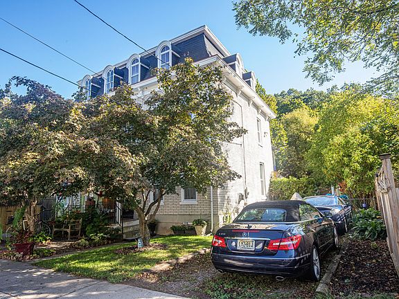 A private, landscaped front yard opens to a driveway for two cars. The deep backyard, has a patio, shed, backs to hillside woodlands. The foyer entry is flanked with columns and kneewalls. In the living room is a gas fireplace, open to the dining room, both have wood flooring and 9 foot ceilings. In the kitchen is a stainless steel gas stove and a side door to the porch. Adjacent is a full bath with a walk-in shower. A back room could be used as an office or breakfast room. It has glass doors to the backyard. On the second floor are two large bedrooms, and a step down dressing room leading to a balcony porch. A full bath, with tub/shower and granite vanity complete this level. There are pumpkin pine floors throughout the second floor. An expansive third floor bedroom has plenty of windows. Perfectly situated on a residential street just a couple blocks from town-center and all of the fine cafes, shopping and activities you will love living in Lambertville.