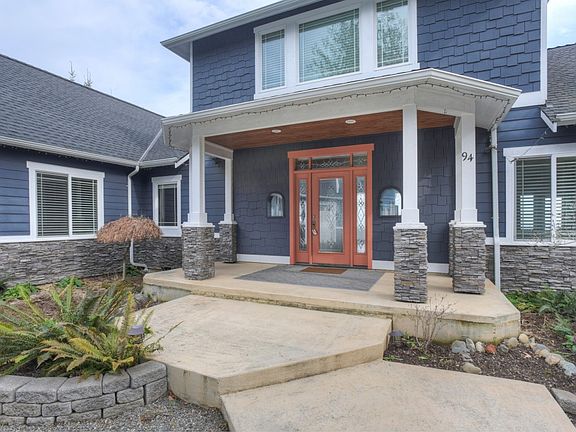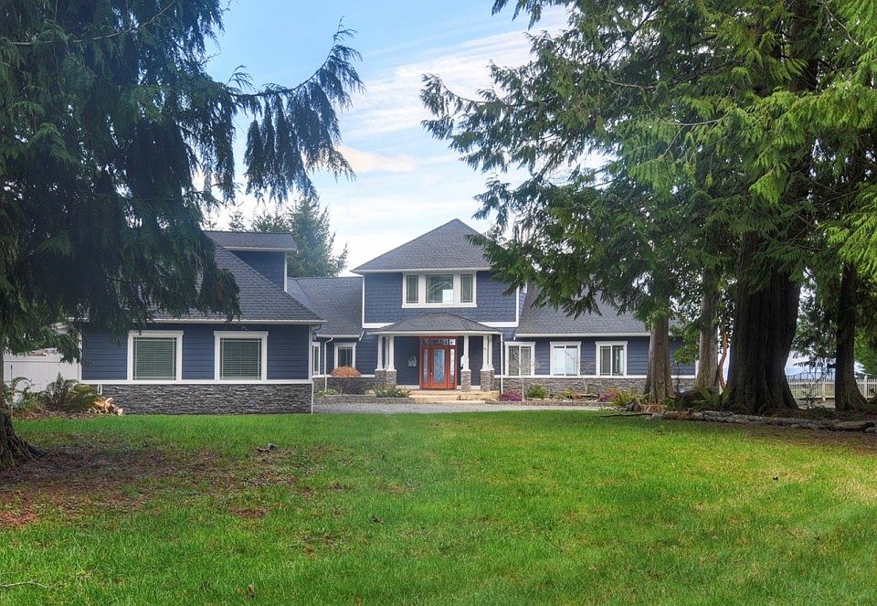 Buyer failed to close so it's your chance to own this Stunning, high-bank waterfront custom home on just under 3 acres w breathtaking water & mountain views. Acacia hardwoods throughout, large entertaining kitchen, 3 gas fireplaces & 1 woodstove, fabulous main floor Master suite featuring a steam shower, private washer/dryer & generous walk-in closet. Lovely 2nd Master bedroom is upstairs w/ walkout balcony; 3rd Master bedroom and/or rec/game room, office, formal dining room, and additional bonus room over garage, + RV Parking w hookups, wired for gen. & SO much more make this elegant retreat a must see!