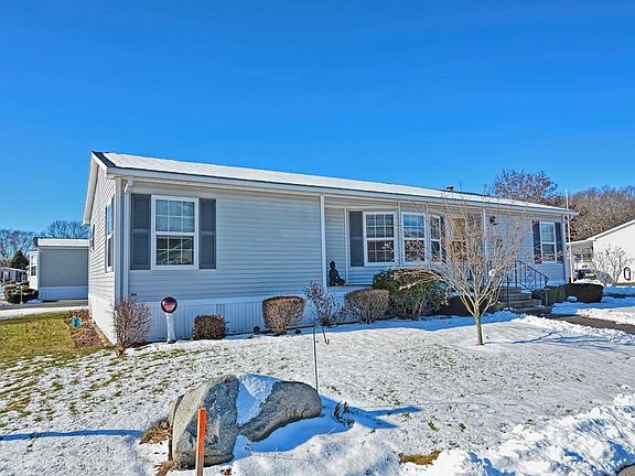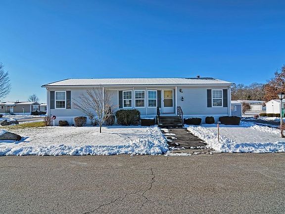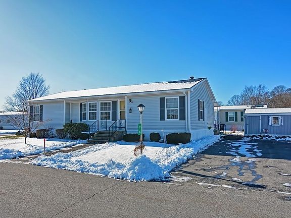 55 plus community is now offering this gem in Rocky Knoll Estates. Sunshine radiates through this corner lot, modular home, complete with two bedrooms and two baths. One level living with large spacious rooms and a great flow. Pretty laminate flooring in living room carries through to dining area. Laundry tucked away by side entrance for convenience. Just open rear door to extend the living space to gorgeous sun porch with beautiful bank of windows! This home has central air, gas heat, and sprinkler system. Washer, dryer and refrigerator will remain with the sale. Roof on shed and main house were replaced in 2017 along with the sky lights. Need more storage, the shed is perfect for all your outside tools. If you are ready to downside it's the perfect choice. Call now!