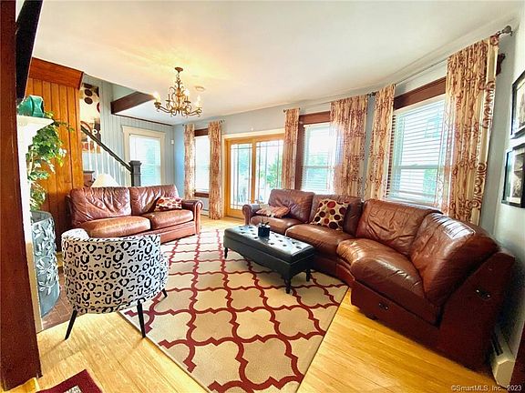 Immerse yourself in coastal elegance with the 5-bedroom, 3.5-bath academic/winter rental in historic New London. This fully furnished corner-lot gem is a short stroll from Ocean Beach Park, boasting sandy shores and a half-mile boardwalk. Inside, a fully equipped kitchen with granite counters and a breakfast bar flows seamlessly into an inviting dining area. The gas log fireplace adds warmth to living room gatherings while spacious bedrooms offer personal retreats. Convenience abounds with on-site laundry, and the third-floor great room, complete with kitchenette and full bath offering flexible space for your vision. Step outside to the wrap-around porch, stone patio, and south facing deck, all perfect for al fresco enjoyment. Modern upgrades shine, from state-of-the-art gas heating system to new windows, new siding, fresh paint and elegant bamboo floors. This prime rental is a commuters dream, with proximity to major employers, hospitals, colleges and easy access to routes 95 and 395. No pets allowed. Rent is $4950/month for up to 4 occupants. Embrace a coastal lifestyle where character meets convenience -arrange a viewing today.