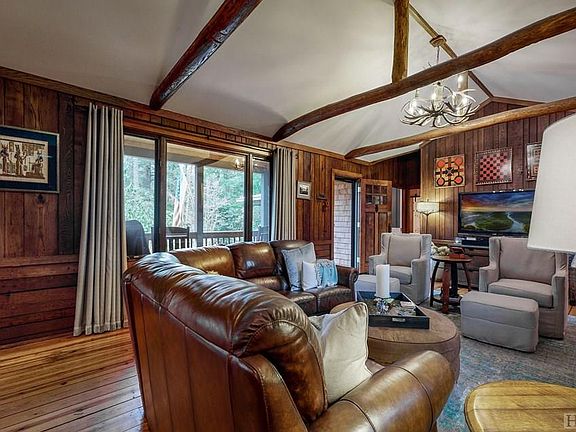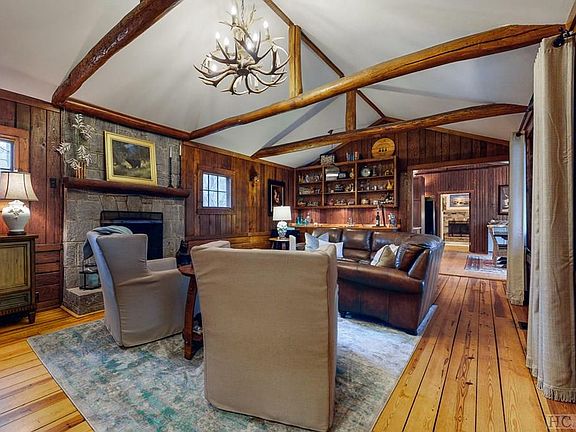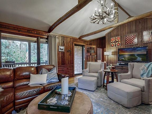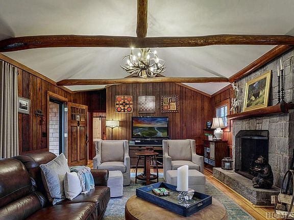 Located in the highly desirable Mirror Lake area, this charming three-bedroom, three-bath home is all on one level. It is a true Highlands classic "charmer" with beautiful wormy chestnut walls and gleaming hardwood floors throughout. The smooth finish, vaulted ceilings with round wood beams are reminiscent of years gone by. The granite fireplace lends a cozy, warm feeling to the living room; it is flanked by the only windows in the home that are not new, kept intentionally because of their classic style. There is a large wet bar at one end of the living room that makes entertaining a breeze. The new, custom kitchen boasts granite, high-end stainless-steel appliances, wine storage, and drawer dishwashers. There are two lovely guest rooms at one end of the home with two updated baths, giving guests their own privacy. A newly added owners' suite includes a private bath, a walk-in closet, fireplace, and a seating area. This suite accesses an uncovered deck that wraps around to the covered front porch. Below is an additional room, currently set up as a "man cave," with a refrigerator, bathroom facilities, another storage space, and workshop area. A lovely fenced-in yard and a double carport were added as well.