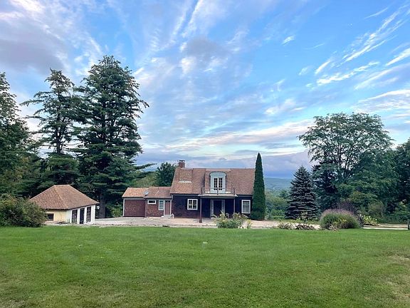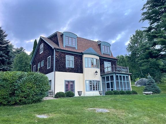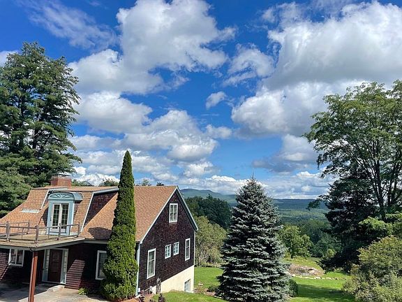 Sited with easterly mountain views on nearly 25 acres of fields, woods and stone walls, you are greeted by the welcoming 36 foot center hall which sets the tenor for the unique features throughout this property. Off to your right, you will find a spacious kitchen, with separate prep areas, a gas range and a silent waiter that serves the three levels of the home. The dining room serves as gathering space, warmed by a fireplace, and is comfortable for both intimate and holiday celebrations. A breakfast room, a four season porch with lovely views, a full bath and the laundry area complete the space off the kitchen. Two bedrooms with private baths complete the main floor. Upstairs you will find a special primary suite -- a private sitting area with office space poised to face the easterly views, a fireplace with wood stove, a large closet/storage space, the bedroom with more closet space and the primary bath with views to the mountains -- and completed with built-ins and it's own outside space. On the sun filled lower level, you will find a library with beautiful built-in shelves for your books and collections -- adjacent to the library the blue stone patio offers you an outdoor space to read -- and enjoy the mountain views. The family room completes this level and features a fireplace with wood stove and doors to a screened porch. Lovely landscaping, many upgrades, a charming potting shed, plus a detached two car garage with storage above. All on beautiful land in Hancock.