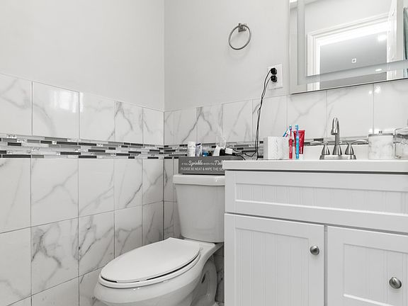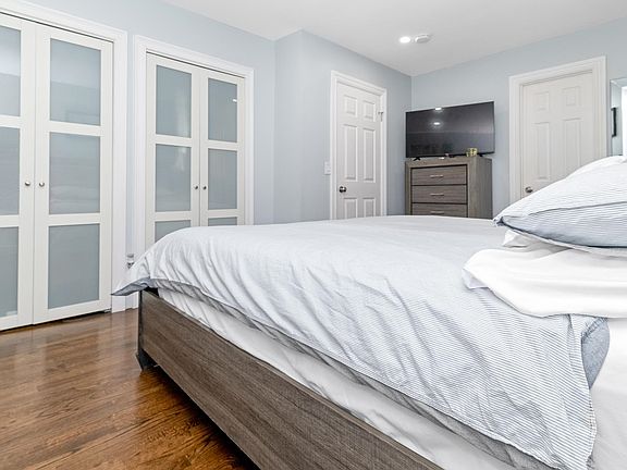 Welcome to Booming Bayonne. This massive updated 2 family home has ample space and is located in a quiet yet convenient area. The first and second floor have identical layouts both offering beautiful hardwood flooring, 3 large bedrooms, 2 full baths, and kitchens with ceramic tile flooring, granite countertops & stainless steel appliances. The second floor was renovated in 2022 and has all new recessed lighting, new stained and sealed hardwood flooring, and a tasteful stone face wall as you enter the kitchen. This home also offers a large fully finished basement with tile flooring, a full bath, & its own entrance leaving you so many options. Lastly enjoy peace of mind with 2 covered garage spaces with plenty of parking out front for 2 more vehicles. This home has all the utilities separate and offers HVAC. Be close to major highways, buses, 8th st lightrail station, markets, shops & so much more !