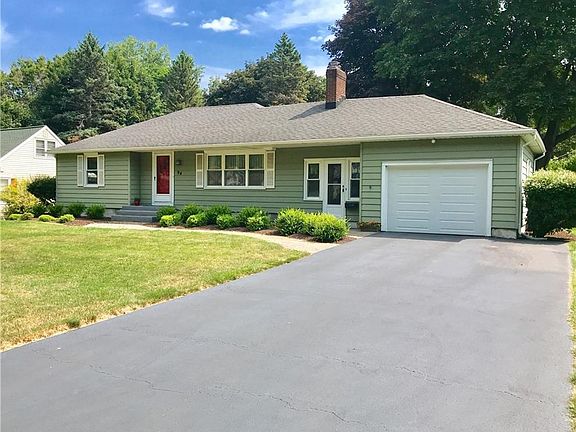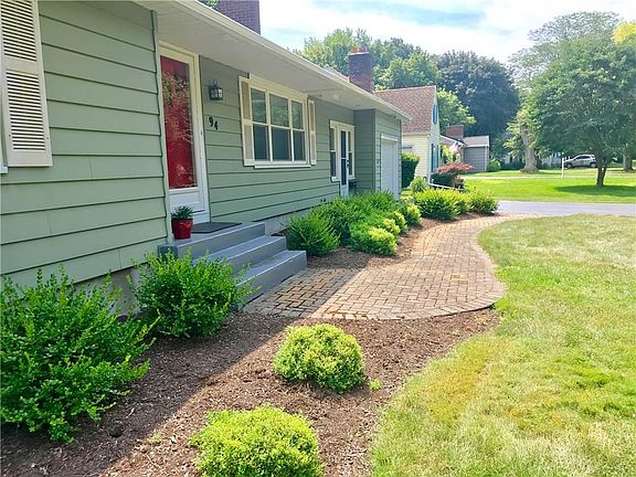 Charming West Irondequoit mid-century ranch on over half an acre in sought-after Oak Grove neighborhood! Features gorgeous new 20k kitchen with quartz counters, tile backsplash, and oak cabinets with soft-close drawers. Cozy living room with wood-burning fireplace and bright breezeway with ceramic tile floor. The full, professionally water-proofed basement provides plenty of additional space with an office and workshop area. Enjoy the park-like setting on the flagstone patio in the huge back yard. Replacement windows throughout, all newer appliances are included. Close to Lake Ontario, Durand Eastman Park hiking/bike trails. Don't miss your opportunity to see this gem before it's gone!