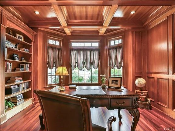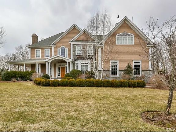 Prestigious Tashua Tree Farm! Magnificent custom built Colonial w/wrap around mahogany porch on cul-de-sac street which borders Easton reservoir w/seasonal views & wonderful sunsets. 4600 sf with addtl 900+/- sf fin wo LL w/fpl & full bath. Home features 5 brs, 5 full baths, 2 half baths & 4 fpls. Beautifully appointed w/quality amenities throughout which include: Gourmet kitchen w/center island & cherry desk w/granite top & built-ins. MBS w/fpl & sitting area; MBTH w/jacuzzi tub & marble & heated flrs. Wonderful office w/cherry coffered ceiling & built-in bookcase w/Brazilian cherry floors & cherry walls w/paneling; transom windows, inlaid Brazilian borders, curved arches, & vaulted ceilings. See addendum, click on video tour link.