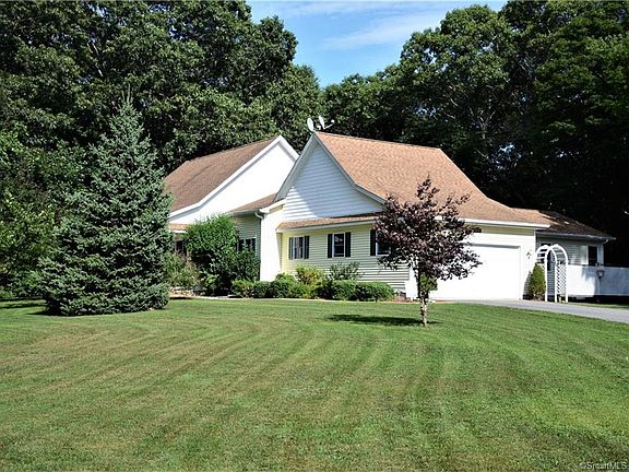 Oswegatchie Area with deeded rights to Niantic River on secluded 7+ acre kit, 2100+ sq. ft. ranch with covered front and rear porches. Great open floor plan featuring a Kitchen with eat-at center isle, pantry, and granite counters open to dining area. Formal dining room, living room with fireplace and sliders to rear covered porch and patio with pergola overlooking private level, park-like yard. Enjoy a large master bedroom with full bath, walk in close and slider to patio. There is also a main floor mudroom/laundry room, full walkout lower level offering future expansion potential. Beautifully appointed home with warm air/central air and hardwood floors throughout.