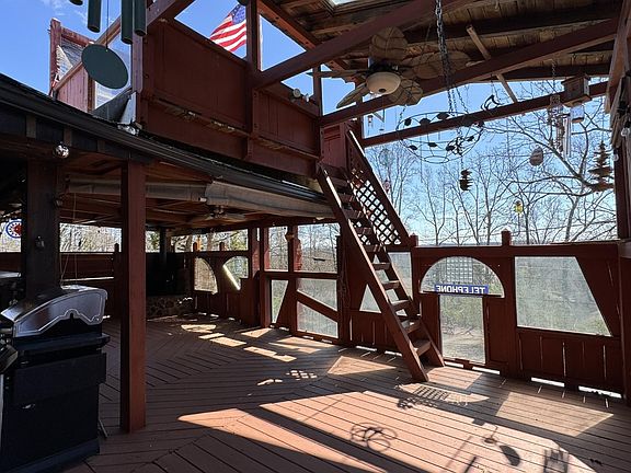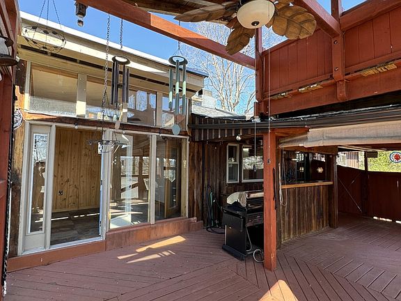Unique tranquil treehouse in the heart of Oak Ridge, walking distance to historic Jackson Square and Big Eds Pizza. If you desire rustic, yet modern cozy vibes with plenty of room to entertain, this is truly a one of a kind retreat. Enjoy ample private deck space with outdoor wood burning fireplace, built in outdoor speakers, custom bar and gas grill area. Upper deck gives you a birds eye view of Oak Ridge, great for stargazing or reading a good book and enjoying the breeze. Inside, you'll find an open cooks kitchen with modern appliances, upgraded gas stove, skylights, original brick fireplace/wood stove and hardwood floors. Tons of cabinets and storage, a convenient home office, inviting sunroom, plus a downstairs master suite with electric fireplace and deep soaking tub. Love to tinker? There's a large workshop area adjacent to the carport. Space can easily be converted to accommodate up to 3 cars. There's also an unfinished basement for even more collectibles. If a cookie cutter home isn't your thing, you will fall in love with this treehouse. This place is perfect for a work from home professional or as a lovely vacation home.