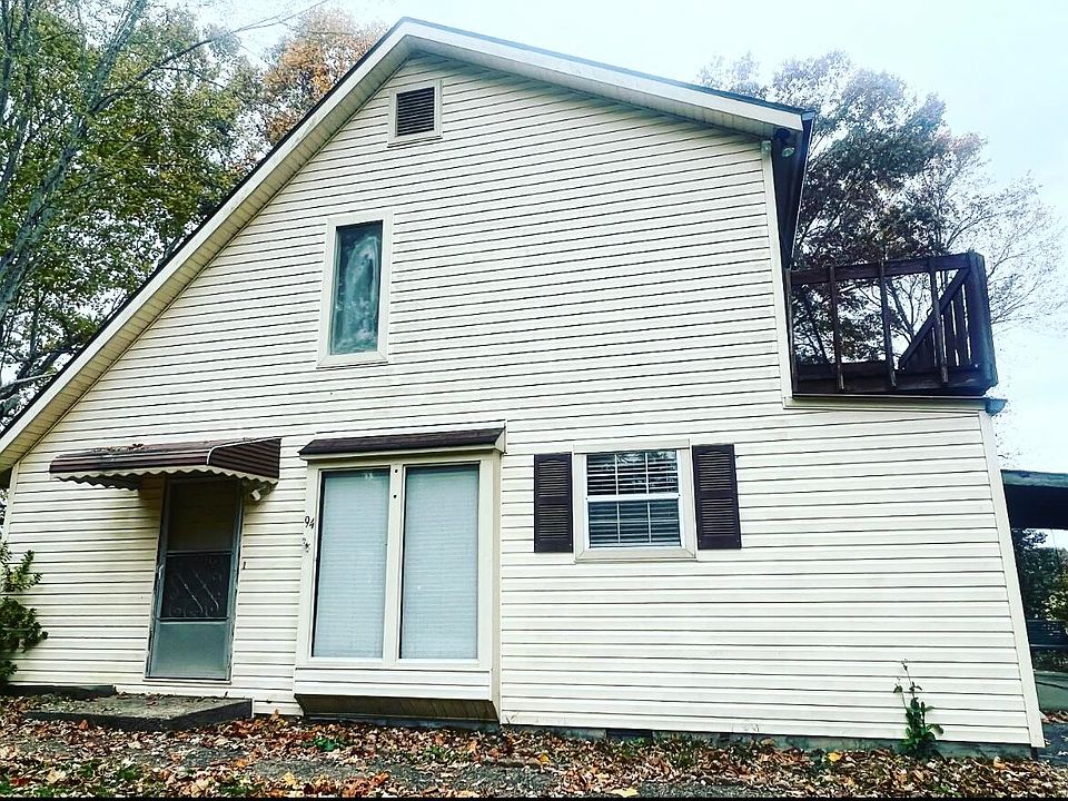 The most charming A-Frame in a picturesque setting amidst mature trees and overlooking vacant rolling farm land. Home boasts an open floor plan with two story ceilings in the main living area. 3 bed/2 full bath with owner's suite on main level. Priced to move! An investment flipper's dream! Call today.