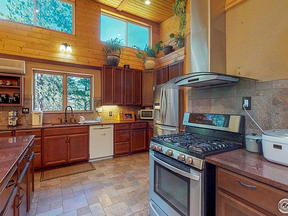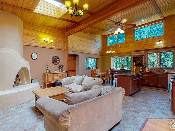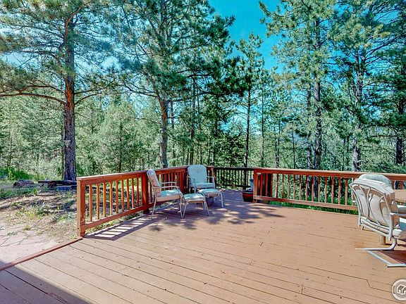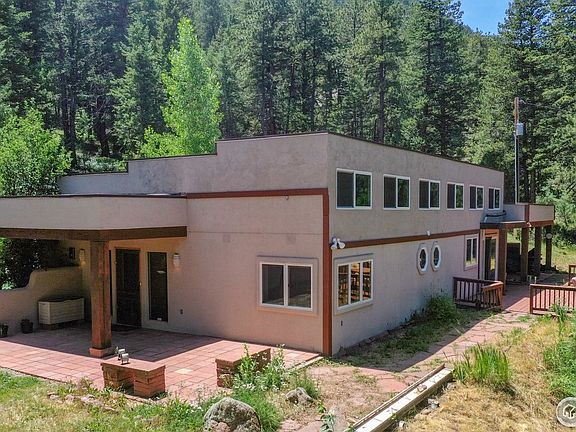 Lots of light w/12'+ ceilings, granite counters, wood cabinets, tile & wood floors thru-out. Surrounded on 1 side by National Forest. Cozy kiva in living room, huge family room with wood heating stove. Large, very private deck, nestled in the pines. View wildlife, peaceful forest, & mountain views. 4 heat sources. Oversized 4 car garage with/room for workshop/ sheshed! Quick commute to Boulder/Longmont! 1hr+ to DIA/Denver. 15 minutes to Continental Divide, Estes Park, Rocky Mountain Nat.Park.