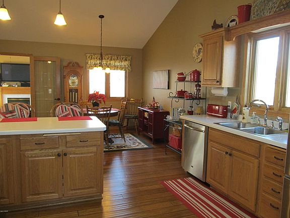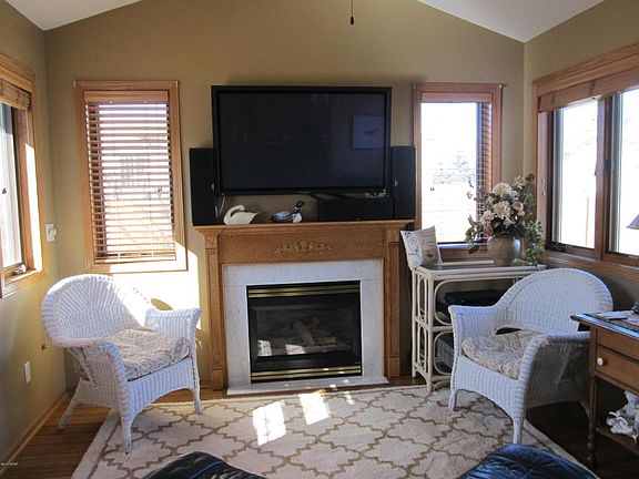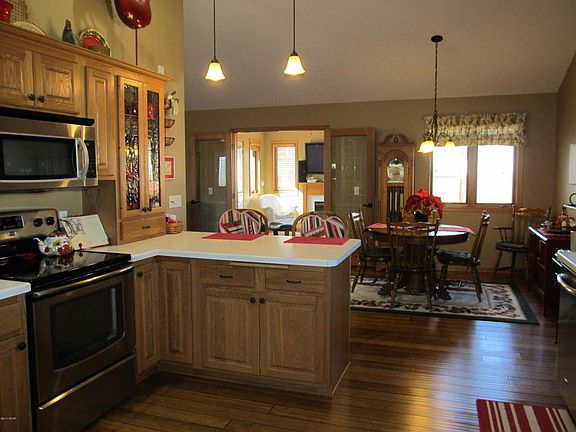 This is a well designed home with an open floor plan. The kitchen, dining area and living room have bamboo flooring. The kitchen has a breakfast bar and a stainless steel stove, refrigerator, dishwasher and microwave that all stay. You will enjoy the natural light from the windows in the 4 season porch with a gas fireplace and French doors. The master bedroom has a private master bath with a whirlpool tub, separate shower and his & her walk-in closets. There is another gas fireplace in the finished basement family room, along with a large game room, bathroom and bedroom. A great feature is main floor laundry. The garage is heated and has an epoxy coating on the floor and additional storage above ceiling. The back yard is fenced and has a patio and storage shed. Located on a quiet street!