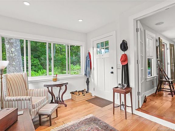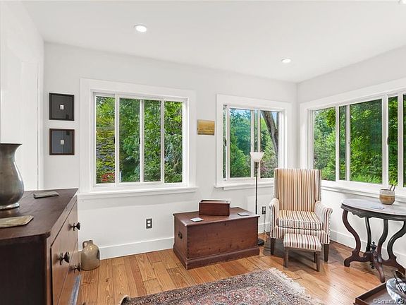 Surrounded by tall trees and lush grass in nearly every direction, this beautiful and expansive three-bedroom, three-bath family home gives you all the perks of backcountry living while being situated just a five-minute drive from the center of Wilton. While it may offer peace and quiet, however, the home is built to accommodate: The first floor alone is a party host's dream, with classic hardwood floors and a massive open kitchen and dining area located just off the huge entryway and sitting room, complete with stainless steel appliances, recessed lighting, a bar-style serving area, tons of countertop space, and a sleek fireplace. Just down the hall past the powder room, you'll find an even bigger living room, anchored by a second fireplace. Perfect for someone who works from home, the first floor layout also includes space for an office, as well as a laundry room. The back deck, meanwhile, gives you plenty of room for grilling, relaxing, and watching the kids play in the sprawling back yard. Upstairs, you'll find two guest bedrooms--both with ample closet space--as well as a huge master suite with a walk-in closet, private master bathroom, and access to a communal sitting area that sits across from another guest bath. On the lower level, the home includes an additional storage area, as well as a 170-square-foot utility room ideal for converting into a workshop.