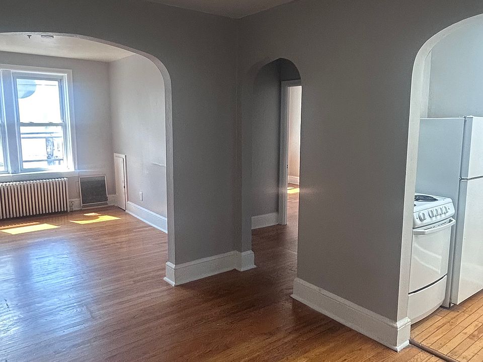 This unit has lots of windows and gets great natural light! The unit also features hardwood floors throughout and an open concept between the dining and living room. The kitchen is on the smaller side, but with it opening directly to the dining room, you will have plenty of options for a table and storage!