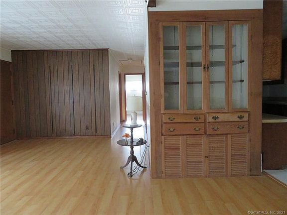 Charming front porch entry to this inviting Ranch style home. Bright & sunny living room/dining room combination with laminate flooring. Galley kitchen with ceramic tile floor. There is walk-in pantry space in the heating closet. Step-down Family room newly carpeted with acoustic ceiling and wood stove. The 18 X 10 bedroom has auxiliary electric heat and skylight and oversized closet space. The updated bath also features a skylight. 20 X 16 screened-in porch off back of house and 8 X 15 wood deck. There is a workshop behind the garage and more storage available in the shed. Quiet residential street with short walk to three schools. Minutes to major highways and train station. 2 hours to NYC and Boston.'