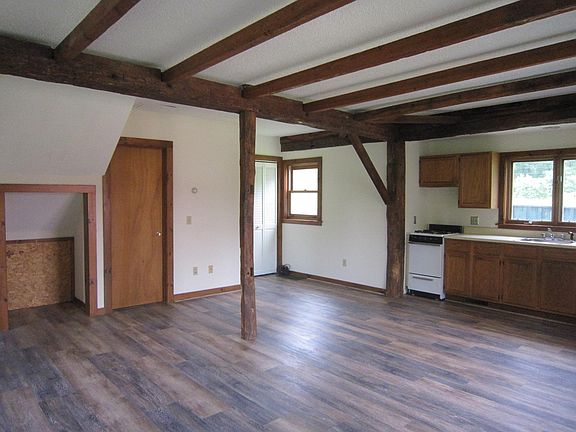Tranquility awaits you on River Road in Newfane. This comfortable 1BR townhouse apartment enjoys the modernity of contemporary living combined with the allure of farmhouse life. The open concept first floor with laminate flooring and beams in the ceiling includes the kitchen, LR and DR areas. The second floor BR with skylights and carpeting has a private deck off the back of the building that overlooks the fields and West River. Freshly painted. All this is outside the Village of Newfane and just 15 minutes from downtown Brattleboro. 650 square feet Room dimensions: LR/DR/KIT 17.3' x 21.92'; BR 15.3' x 11.52' Off-street parking Management pays snow removal and landscaping. Tenant pays heat, hot water, electricity, trash removal, internet, telephone and television. $875 per month rent First, last and security to move in One year lease No pets No smoking or vaping on property If someone asks you for money, it could be a scam. We only ask for a $25 per adult application fee before lease signing. Management pays snow removal and landscaping. Tenant pays heat, hot water, electricity, trash removal, internet, phone and television.
