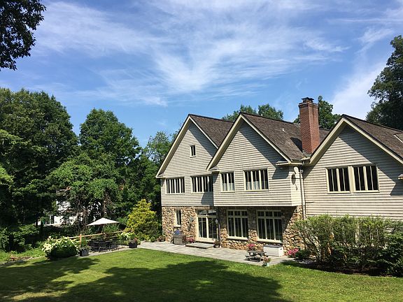 Impressive Colonial style home set on a private extension off Riversville Rd. This elegant stone and shingle residence features high ceilings, refinished hardwood floors and natural light throughout. Beautiful double height foyer. Gourmet, center-island kitchen connects to the family room w a stone FP. Living room w double french doors & FP opens to a formal dining room w a French door. Library w wet bar and built ins. Master suite w a spacious dressing room. Master bath w steam shower, separate whirlpool tub, & double sinks. 3 double bedrooms w ensuite bathrooms and walk-in closets. Generous great room w three exposures. Finished lower level w high ceilings features a theatre & exercise areas. Large terrace & parklike grounds w two wood-burning outdoor fire pits. Attached 3 car garage