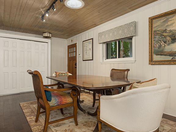 A large window in the living room offers a wonderful view for observing wildlife and various bird species. After a long day, unwind in the built-in sauna or retreat to the master suite, complete with a custom walk-in closet and a tiled walk-in shower with heated floors.