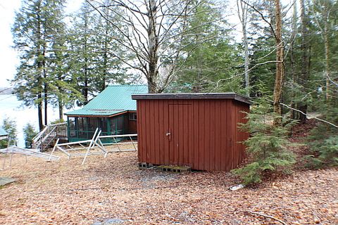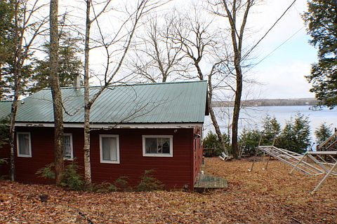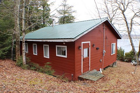 Adorable little camp nestled on the shore of Pleasant Lake. A great panoramic view from the open concept living area inside, newer bath addition, circuit breakers, metal roof and large vinyl windows in the front, this place is great for summer gatherings at an affordable price!