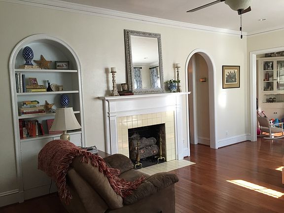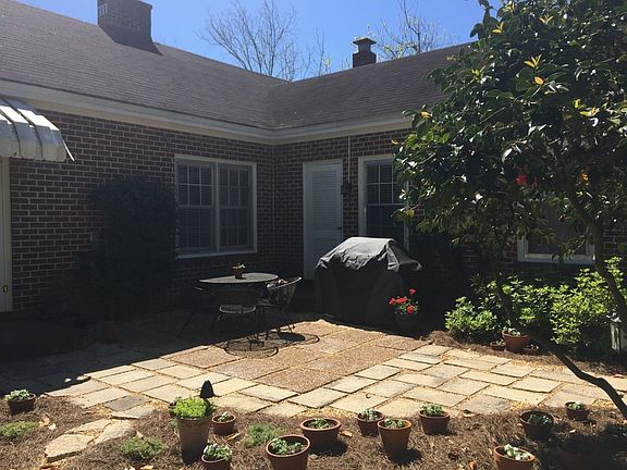 This all brick home sits on two city lots offering plenty of room to expand. Vintage cottage charm is present with built in book cases, hutches and wood work throughout. Large rooms are flooded with natural light. The breakfast room is currently used as a play room, but could also serve as an office. The home has both new and original solid hardwood flooring. New insulation and a new heating and air system were installed in 2014, and the home was rewired in 2010. The kitchen and much of the plumbing have been updated as well. A patio and two out buildings are also located on the property
