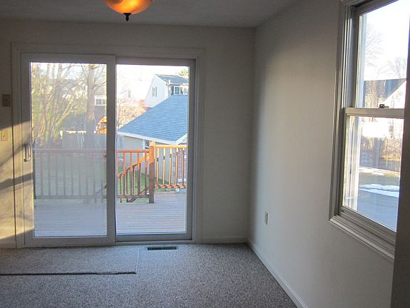 Spotless, move in condition. Ceramic tile kitchen with gas stove, refrig, dishwasher, disposal, and island. Plenty of cabinets with adjoining dining room with sliders to a very nice generous deck. Living room is very spacious, three bedroom on second floor with full bath. Brand new carpeting throughout. Central Air, gas heat, Large clean basement with laundry hookups, storage. Off street parking on driveway in back of house. Adequate yard. Tenant pays all utilities, Owner provides most snow removal, lawn maintenance. Available March 1, 2016 E mail Agent for appointment jcollinsrent@yahoo.com First last and security deposit; $475.00 agent fee. Please - no smoking - no pets. Owner pays for trash, water & sewer, most snow removal, grounds. Tenant pays for gas, electricity and cable. Driveway Parking for 3 cars .First Last and security deposit; $475.00 agent fee due at lease signing. No Pets; No smoking