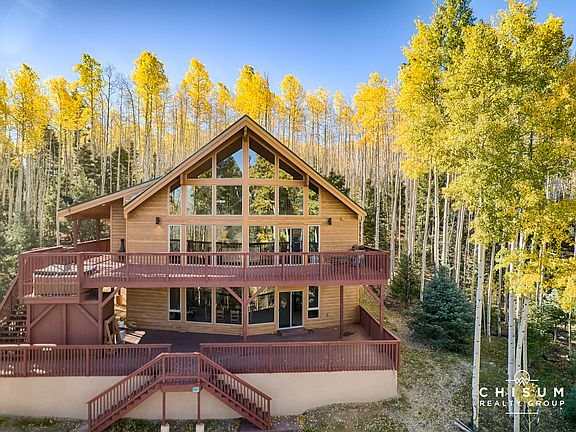 Come explore this large mountain retreat that is perfect for a large family or small groups. 94 Santo Domingo Trail is tucked up above the road surrounded by Aspens, providing privacy and amazing mountain and valley views from every room in the house. Additionally, the large wrap-around deck with hot tub is just perfect for melting away the stresses of the world. Inside you will find a large, well maintained home with an impressive great room with a large window wall, Kiva fireplace, wood floors and ceilings. The kitchen features stainless steel appliances, tile backsplash and granite countertops. The open concept floor plan is ideal for allowing the whole family to gather and enjoy time together in the mountains. The main floor master features vaulted ceilings with a large wood beam, private patio doors, a walk-in closet and an ensuite bath with jetted tub, double sinks and separate shower. The large upstairs loft features 3 rustic twin beds and a full bath. The lower level features a large game room and second living space as well as two more large guest bedrooms and a full bath. This property comes fully furnished and has a very profitable rental history.